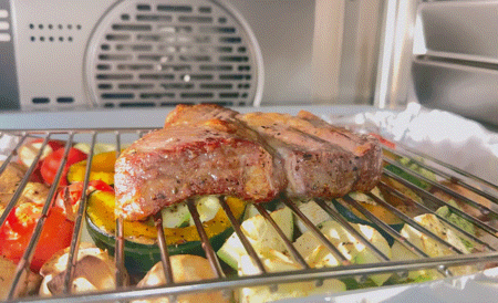热风+上层发热管使得它的空气炸效率很高,蔬菜很快便烤软,牛排也烤出了漂亮的焦斑~