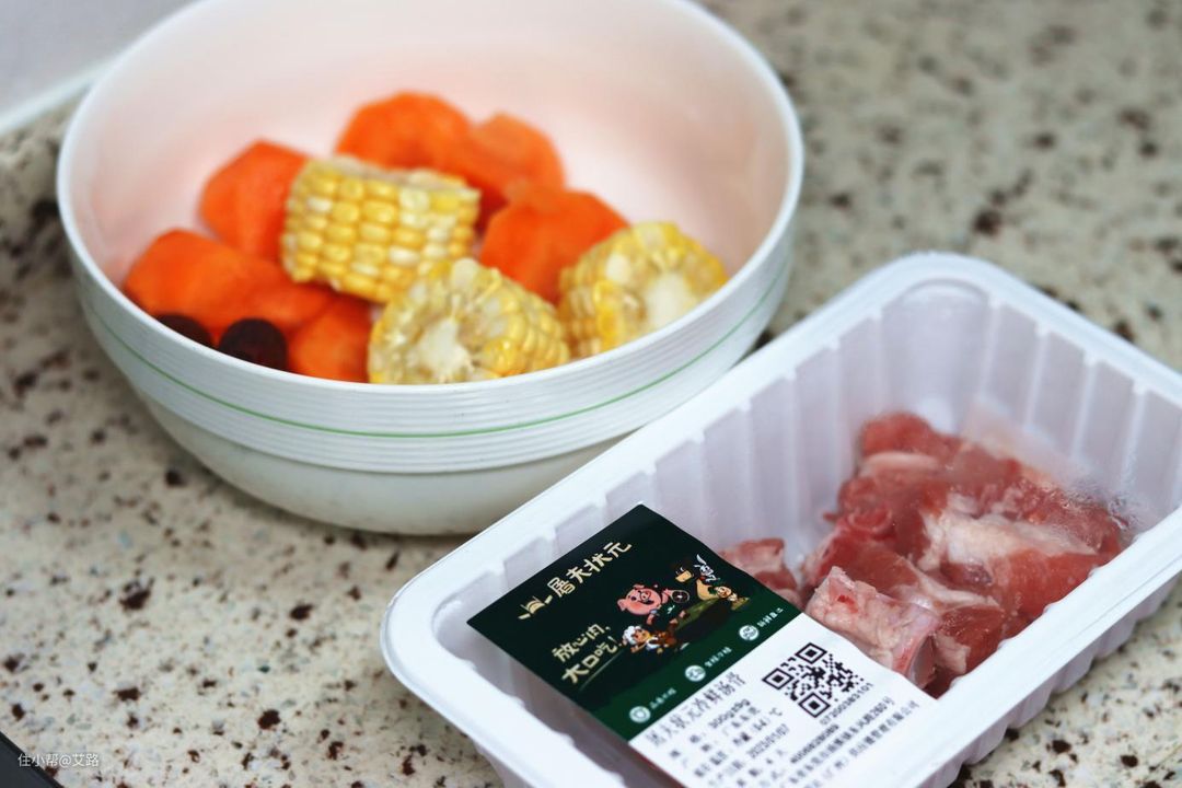 这次艾路准备的是四季皆宜的汤料,胡萝卜、玉米、马蹄和汤骨,来制作一个玉米萝卜汤。