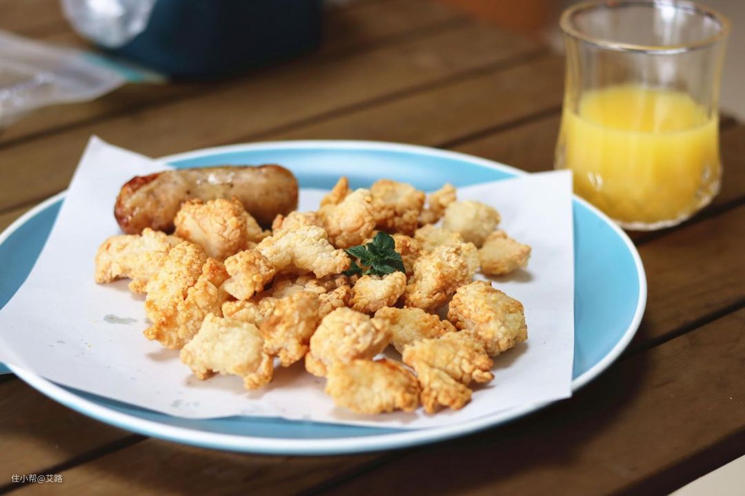 这里艾路选用的是老演员朋友——泰森盐酥鸡,外加一根锋味芝士烤肠。