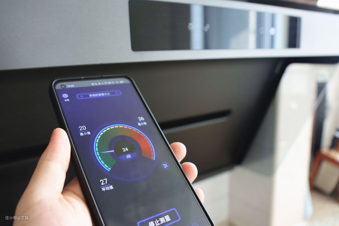 开启一档的时候,噪音大约是40dB左右,处于非常小声的状态,属于听得到,但完全不觉得轰鸣刺耳,走出厨房就几乎没能感觉到噪音了。