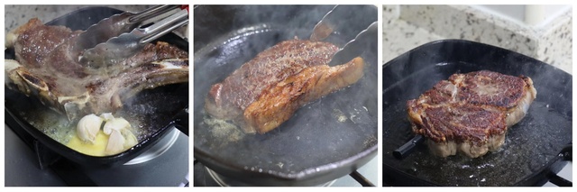 ▼滋啦滋啦,美拉德反应越强烈焦化层越漂亮,煎出来的牛排也越好吃