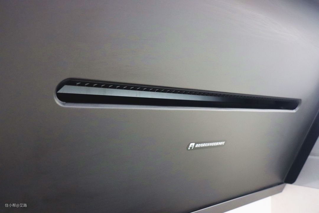 这台烟机最引人瞩目的,应该就是这个超小的进气口了。米家智能净烟机P1采用无油网的设计,进烟口做成了细细的长条形,开始使用之前我还有些担忧它是否能达到理想的去除油烟效果,开机试用之后,这个顾虑便马上被打消了。