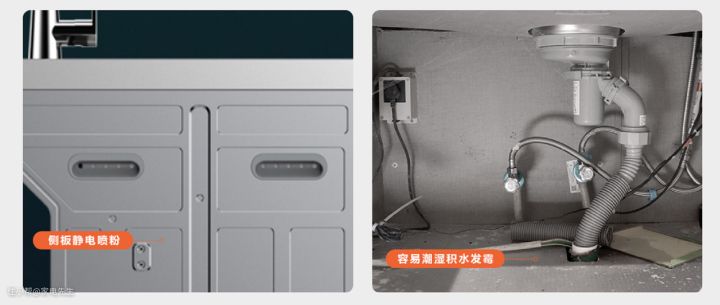 水槽下面的橱柜是容易出现积水的,时间长了还会发霉。