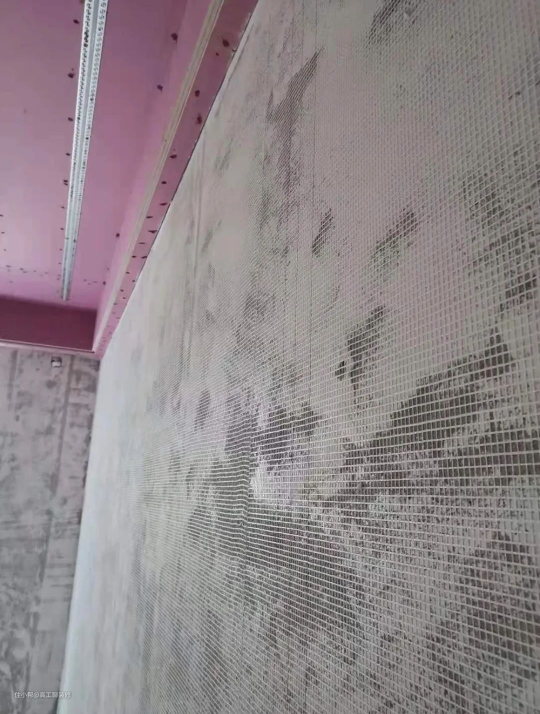 在新旧墙体交界处水电开槽处,吊顶接缝处挂网,防止交接处开裂