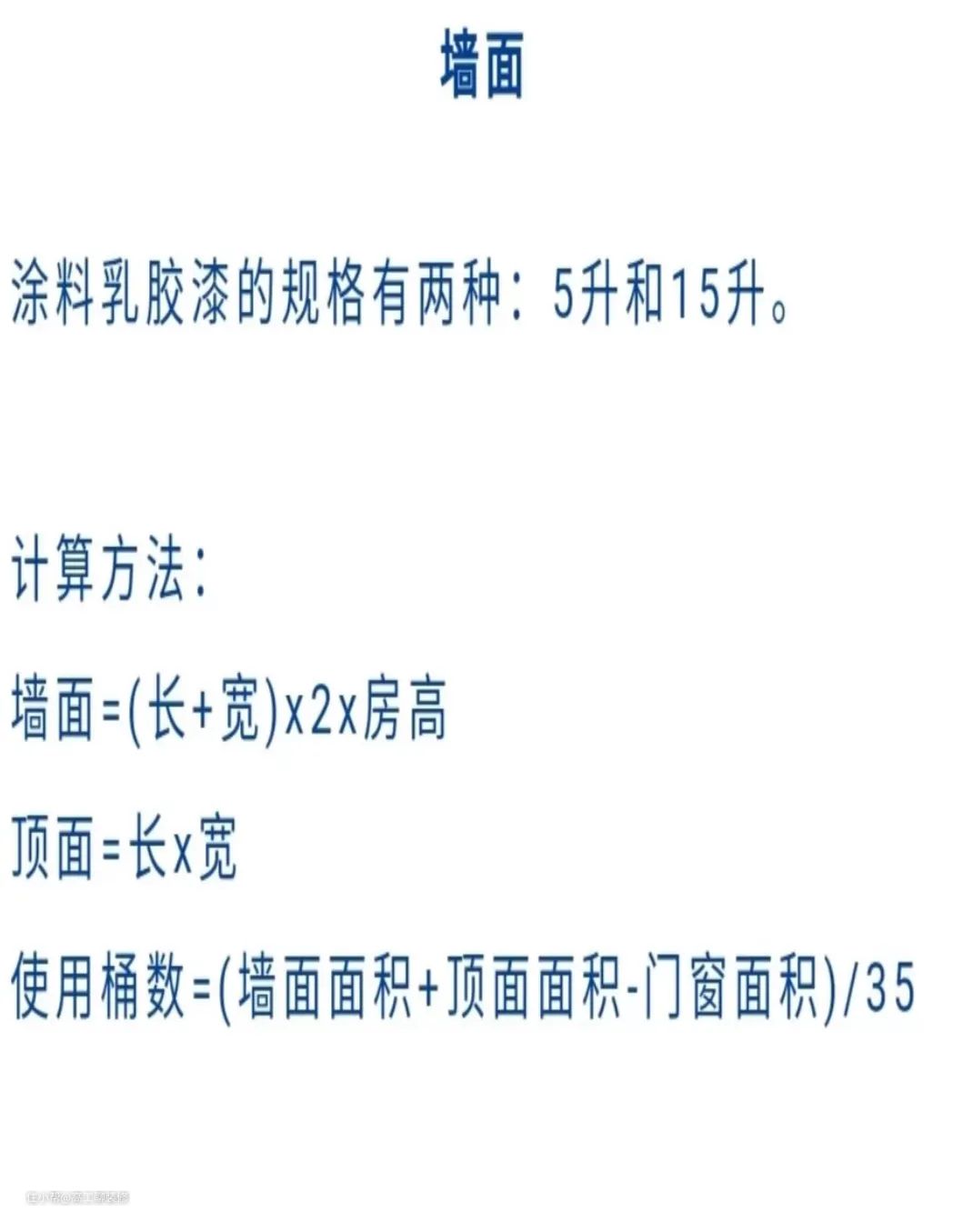 大家可以记住这个计算公式,避免涂刷乳胶漆的时候出现买多买少的情况: