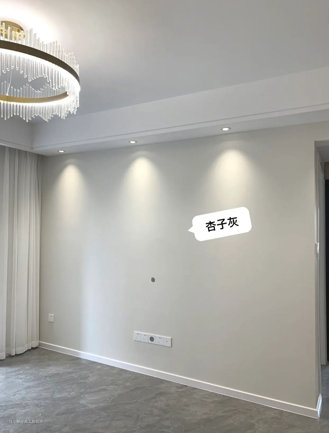 杏子灰整体色调偏灰也可以偏暖黄,特别是家里楼层不高,光线比较暗的可以考虑这种颜色,因为它是介于白色和灰色之间,告别了白色的单调,解脱了灰色的暗淡无光的压抑感。