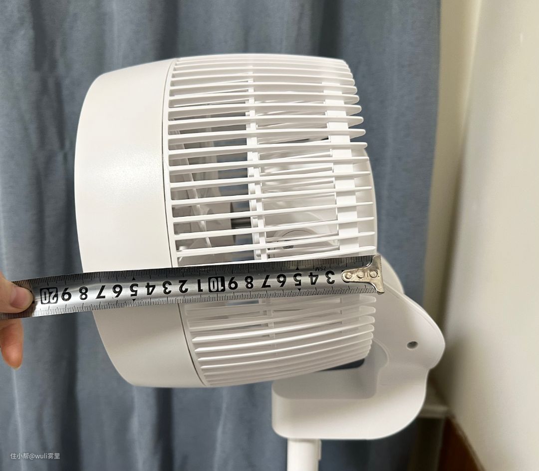 这台空气循环扇一眼就能看出它跟其他空气循环扇不太一样,纤细的身躯上有一个超大的脑袋,后脑勺的直径肉眼看跟扇面直径不相上下。