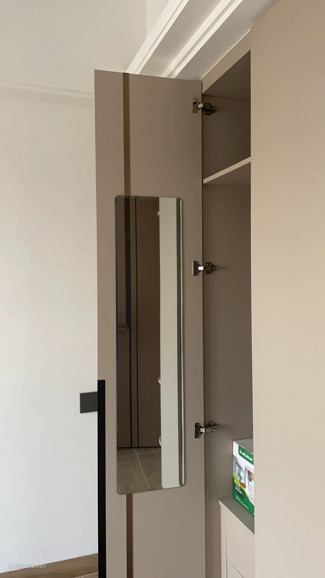 藏式镜子隐藏在衣柜中是一种常见的设计,因为它可以在美观的同时提高衣柜的实用性。