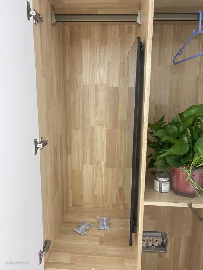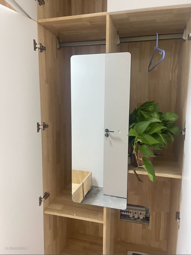 镜子藏在衣柜侧板上,让你更容易地整理和搭配自己的衣服。你可以轻松地看到自己的全身照,从而更好地了解自己的外观和搭配,减少了试穿的时间和麻烦。