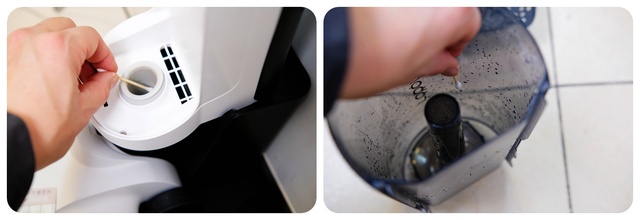 清水箱的开口是大直径设计,加水加清洁液都很方便。