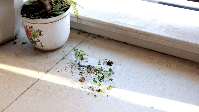 阳台上我清理出来的杂草、泥土,浇水时候不小心洒在外面的水,都可以用A10一次性的打扫干净。