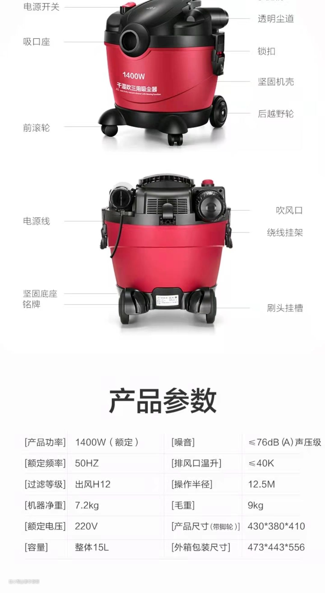 - 干湿吹三合一,干吸,湿吸三合一,性价比高,适合家庭开荒,酒店,写字楼,小型车间的清洁