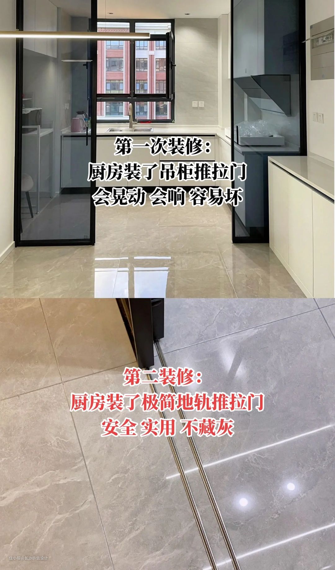 厨房推拉门不用吊轨,装极简轨道,安全实用好清理。