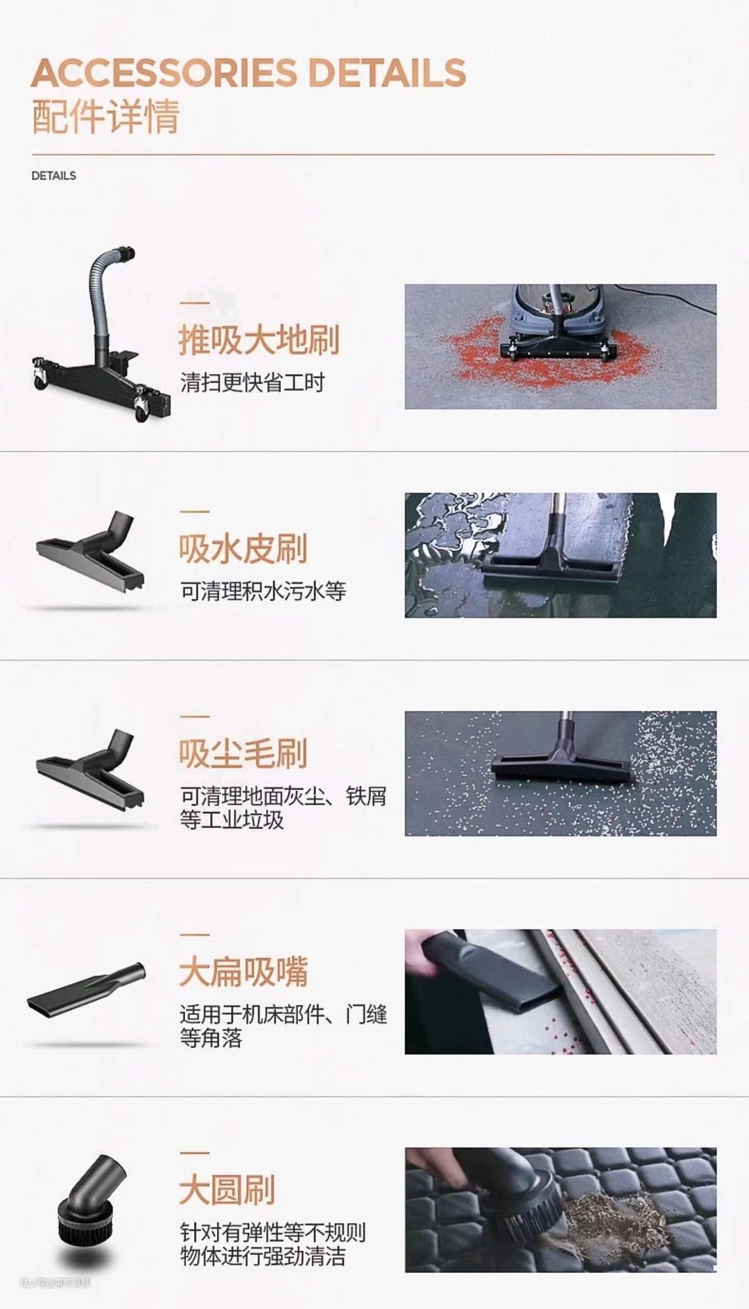 - 干湿两用:干用轻松吸走铁屑和木屑瓜壳等干性物体;湿用清理残汁脏水等液体
