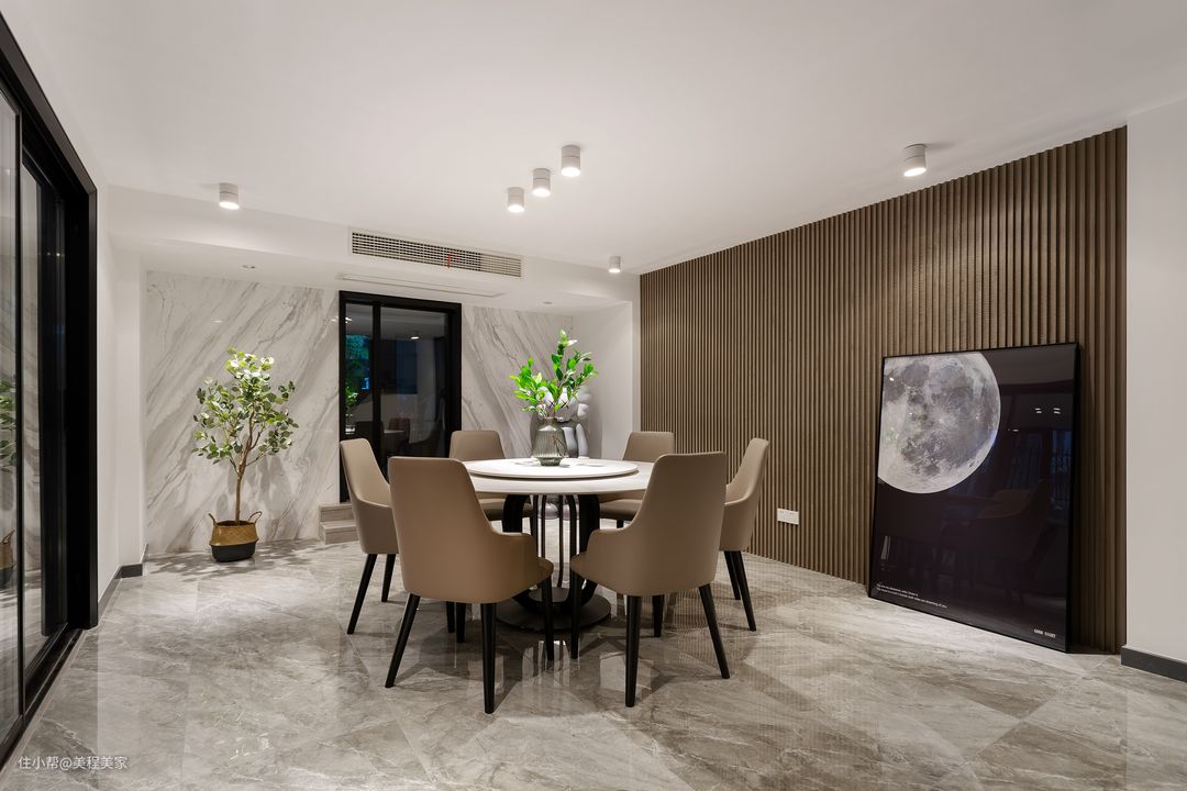 6、餐桌椅要和墙面保持一尺的距离,这样在后期搭配墙面装饰画时不会觉得突兀。