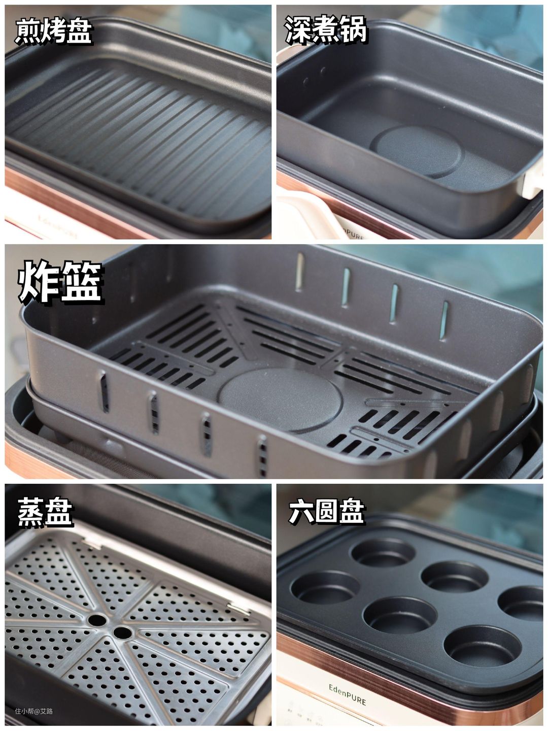 将宜盾普这台空气炸多功能料理锅各个料理盘都试用过一遍,实际体验都挺不错的~多种功能任意切换,可煮可蒸可煎可炸,应用范围很广。