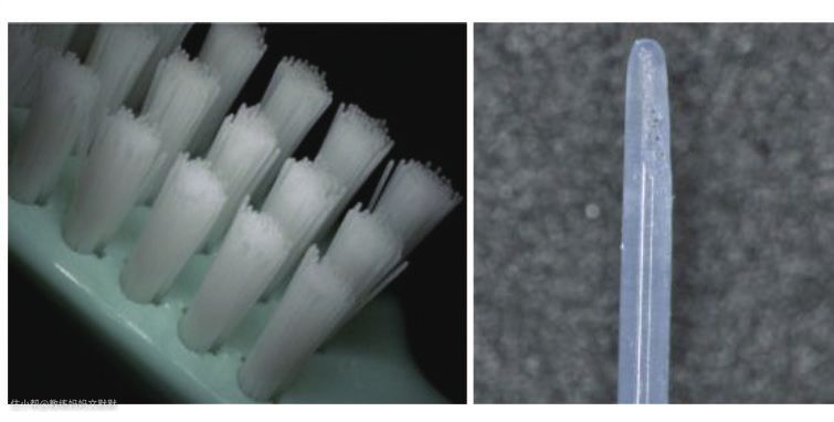 刷毛磨圆率:刷毛顶端直接接触牙齿表面和牙龈, 未经磨圆的刷毛顶端参差不齐, 刷牙时容易损伤牙齿和牙龈。儿童牙刷国标要求儿童牙刷的刷毛顶部轮廓磨圆率,平形毛型牙刷刷毛单丝顶端轮廓合格率应≥70%;而异形毛型牙刷刷毛单丝顶端轮廓合格率应≥50%。