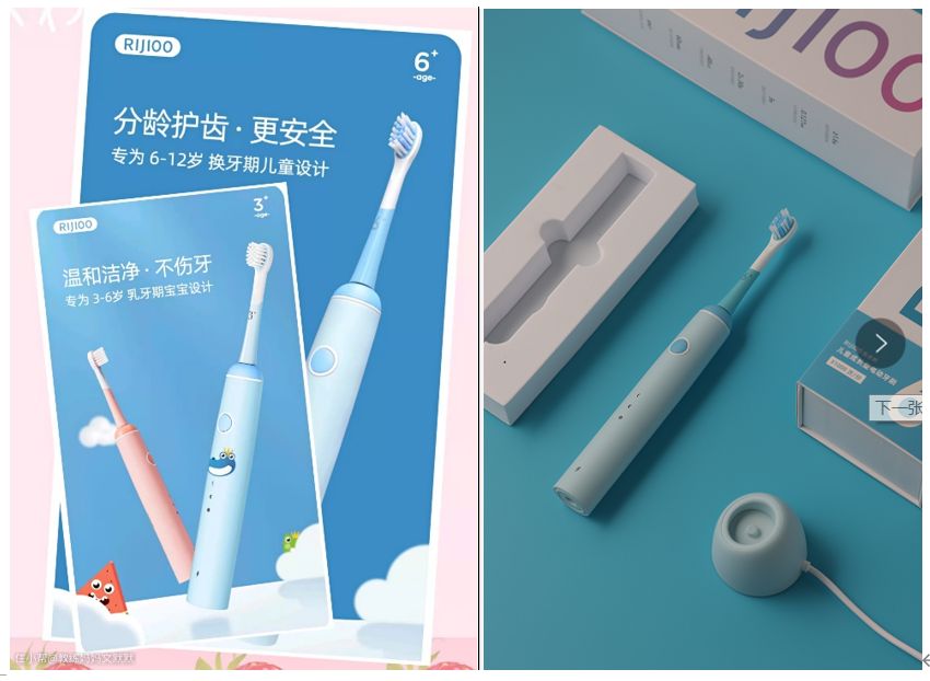 牙刷分龄这一块手动牙刷做得比较好,像狮王等品牌都按年龄、牙齿萌出阶段、家长是否辅助分了4段产品,细分可谓十分到位了。而儿童电动牙刷,据我了解目前国内就RIJIOO这个品牌在主推分龄护齿这一个概念。分别推出了萌牙期、乳牙期、换牙期三个阶段的产品。