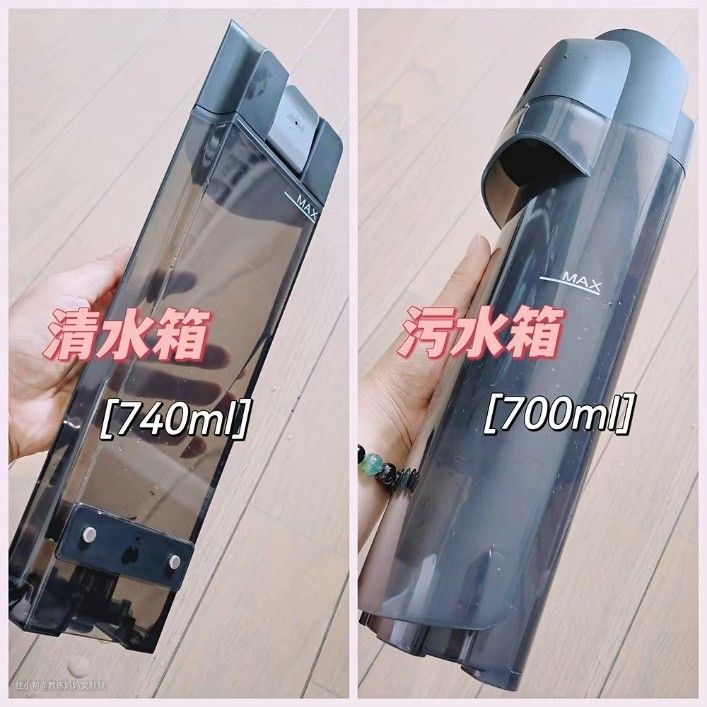 3、水箱容量:740ml清水箱、700ml污水箱。一箱水能拖一次洗拖近200㎡。污水箱里是干湿垃圾是分层设计的(很多洗地机的污水箱没有做分层),上面过滤出干垃圾,下面是湿垃圾。分层的好处是能够单独过滤出干垃圾后扔进垃圾桶避免一股脑全倒出去导致马桶堵塞。