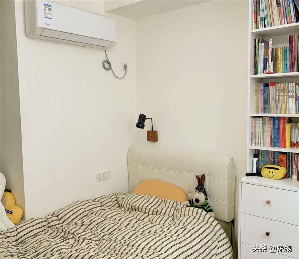床铺睡眠区虽然不算大,但布置得很舒适,因为这位宝妈明确表示不做榻榻米,所以床铺尺寸、家具尺寸都要经过仔细测量后,再进行搭配,尽可能多得利用起每一寸空间。