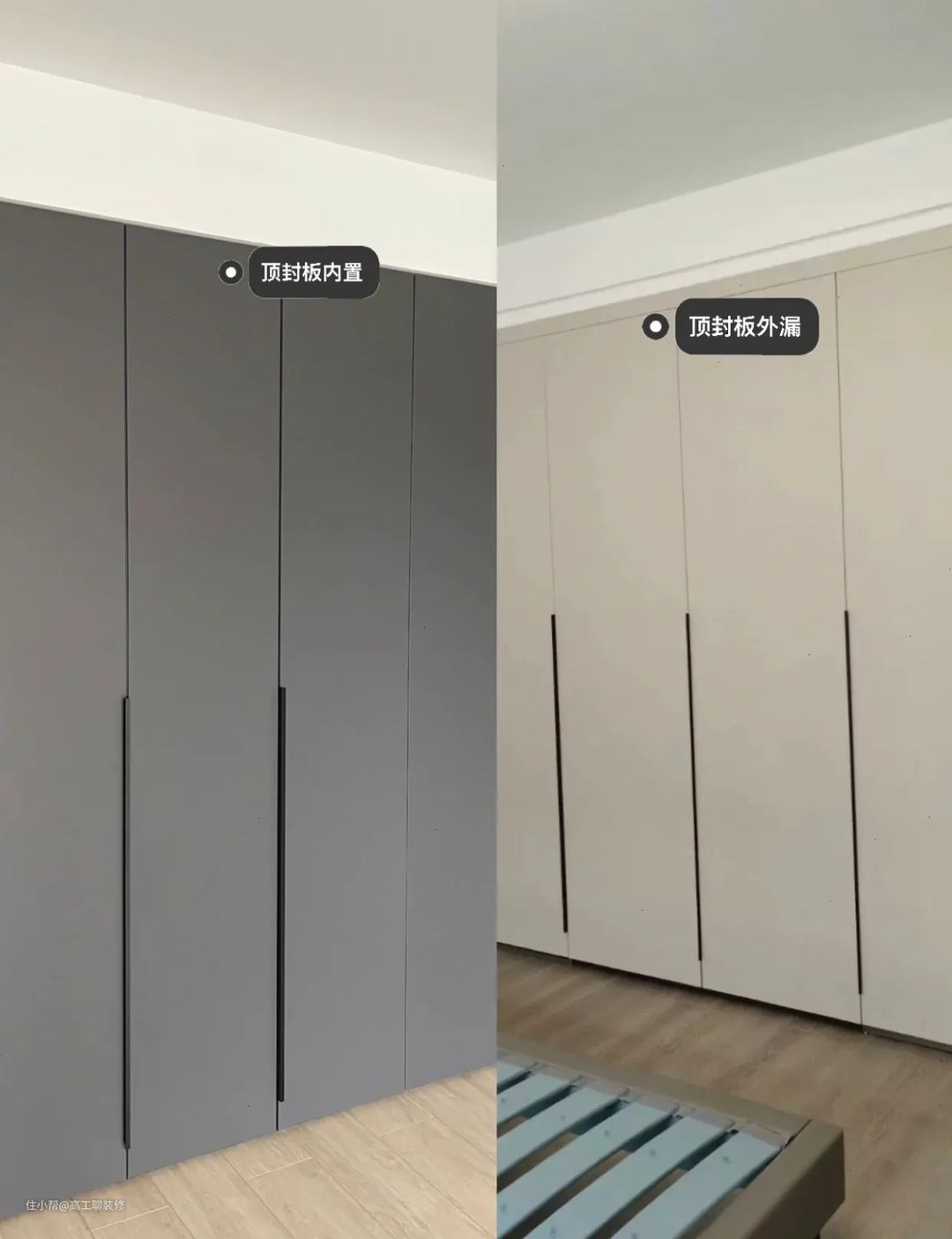 柜门一门到顶是直接连接地面和天花板,视觉上干净,显得更加高级,但是往往有部分商家很容易在一门到顶上翻车,使用很宽的封板,不但不协调而且还很影响视觉效果,这也许是不专业导致的。