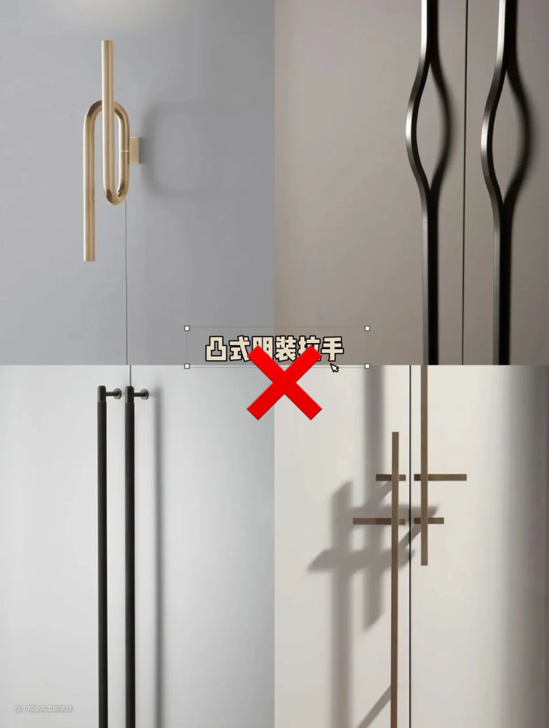 现在的凹槽式拉手或者拉直器,将把拉手隐藏起来,视觉上更加统一,而那些为了签订这个单子承诺赠送拉手的商家,直接赠送的话传统拉手,安装上后凸出柜体表面,真的很影响整体的视觉效果,直接拉低了整体衣柜的档次。
