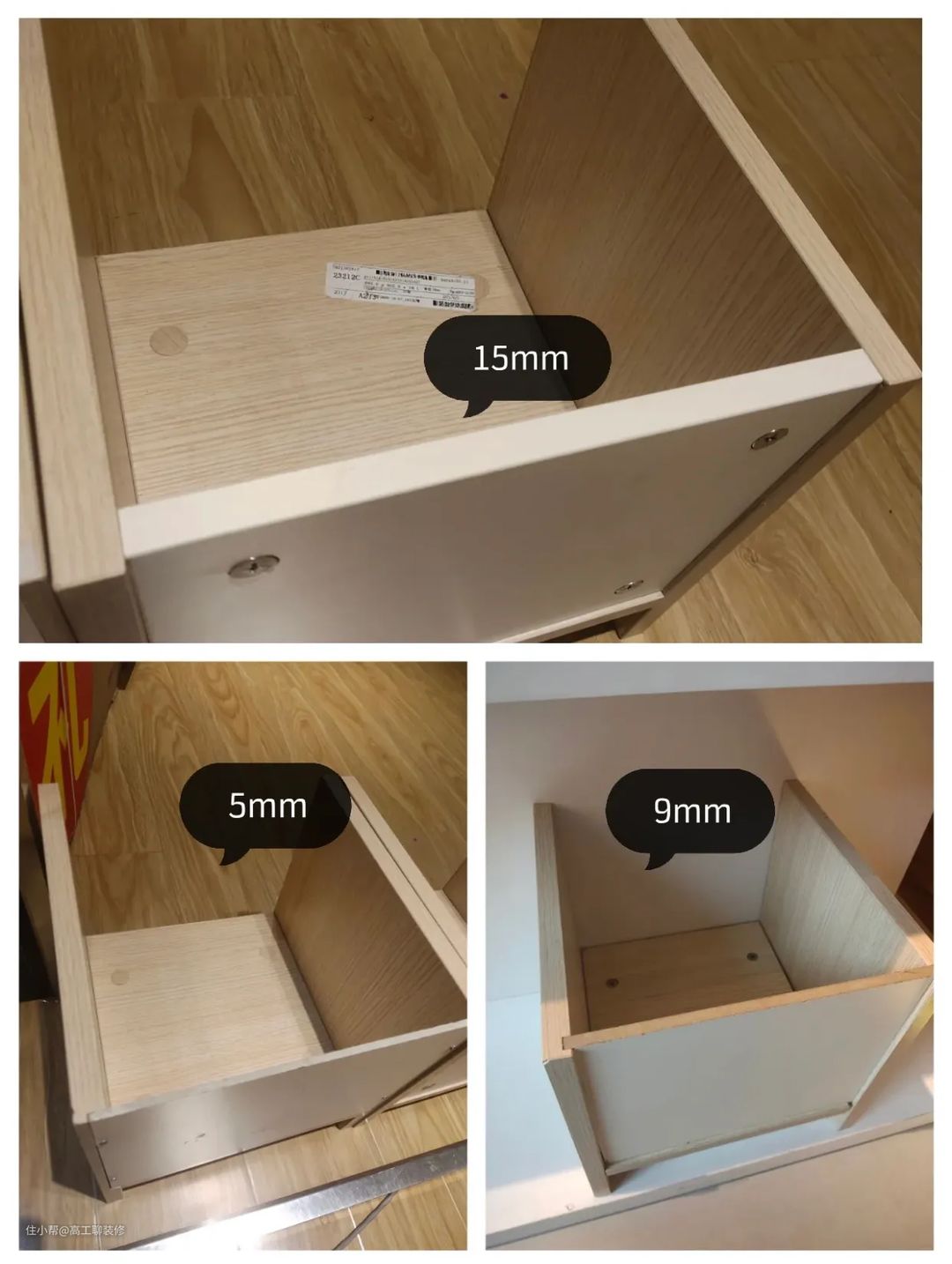 现在衣柜背板有9mm、15mm甚至还有18mm厚的背板,虽然背板靠墙体,但是越厚的背板衣柜结构越稳定,使用起来更加安心。