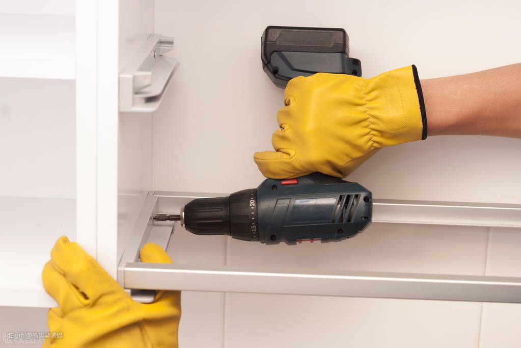 4、装拉手需要注意高度统一,拉手装上去一旦不对称,就很影响美感