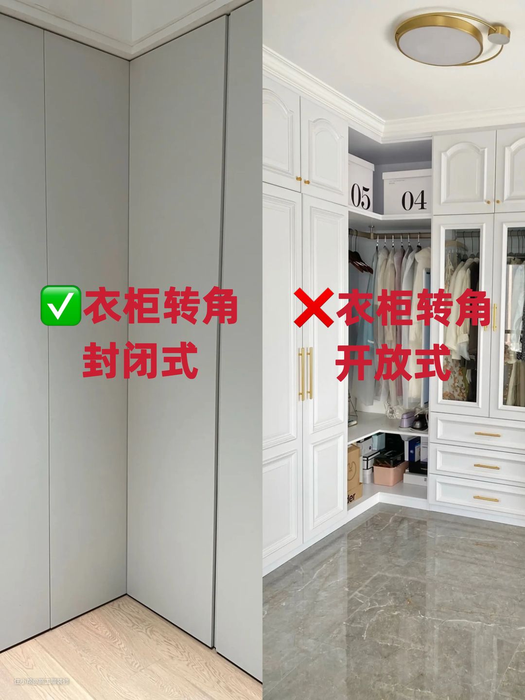 把衣柜转角做封闭式,就是为了避免一些灰尘很容易进入衣柜的转角隔板里,打扫起来真的很麻烦。