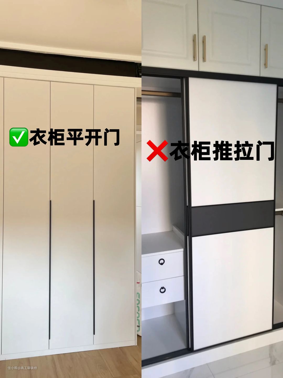 对开门的衣柜不用担心轨道积灰,而且还比较美观好清理;推拉门长时间底部全是卫生死角,很容易积灰,打理起来真的很麻烦。