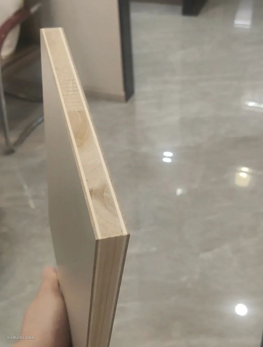 颗粒板的优势呢平整度好,吸音隔热强,没有虫眼,价格也比较亲民,是目前大多数定制品牌的标配,但是缺陷是不防水,而且握钉力差,市面上价格参差不齐,也不适合木工现场制作。