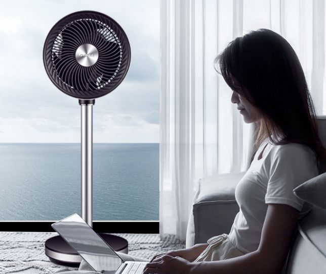 这款风速风量都是OK,优势在于:铝合金材质,颜值高,以及稳固扎实的底座,优质耐用;新增一键快速循环模式,可快速打乱室内沉闷空气,这是与竞品的微差异功能;可wifi链接APP,也可以用遥控器等多种控制方式,智能化还可以。