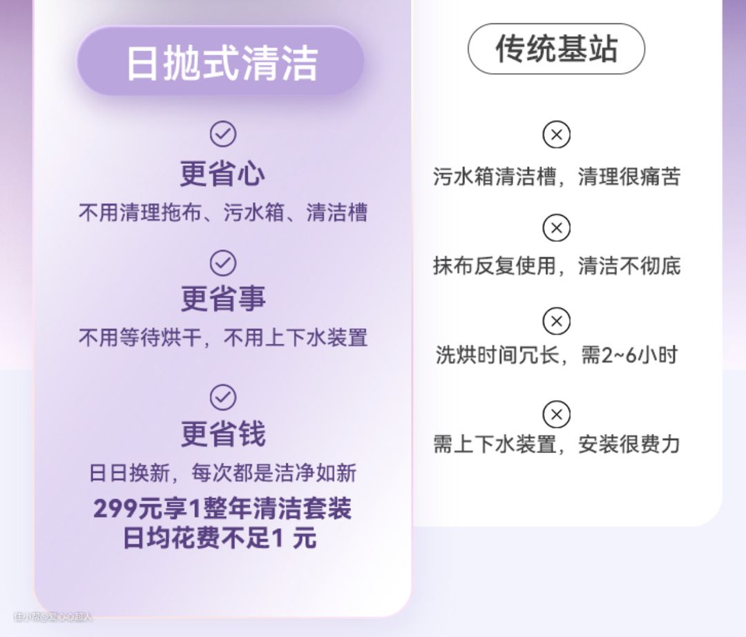 按照拖布一年200的耗材来算的话,3K块的差价可以购买15年的一次性拖布,而且还更加卫生、健康、省事~