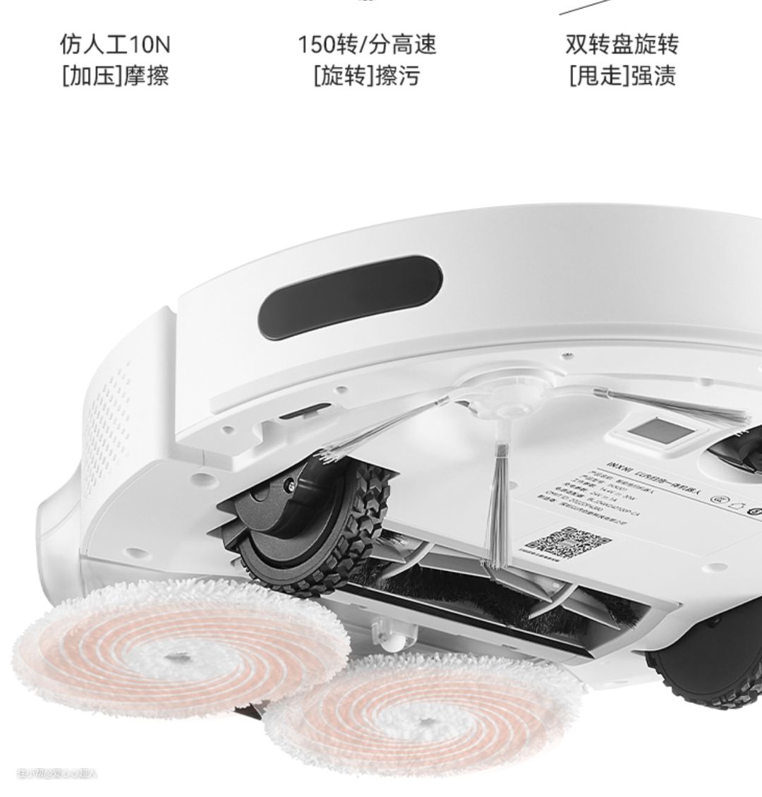 150转/min的10N双盘螺旋擦地模式,模拟人手擦地,洒在地板上的顽固咖啡渍也能轻松搞定!彻底解放双手和老腰~
