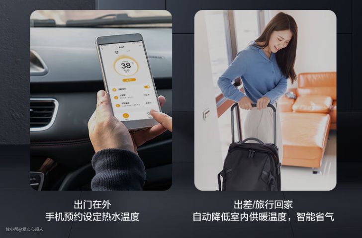 除了上面提到的云管家智慧功能外,还有一项特别省心的外出节能模式——短暂出门买菜、逛街的时候开启这个模式,水温会自动降低到30°C左右,回家以后还能迅速升温,省气的同时也不影响正常使用。