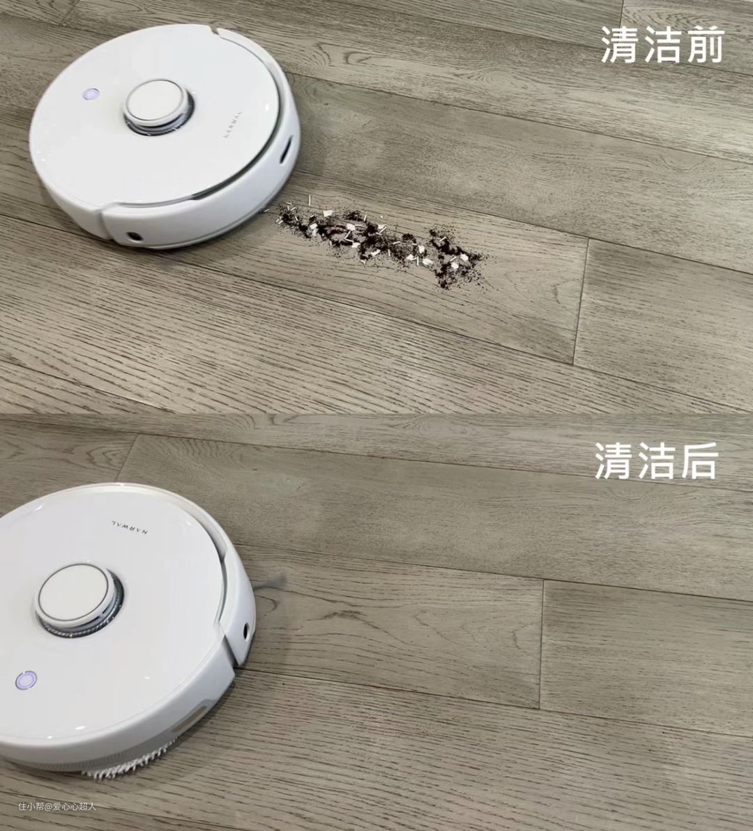 日常体验下来我也试了大部分,啥橘子皮,饼干薯片,洒的饮料,下雨天踩的鞋印,都不在话下,机器人保姆本人~