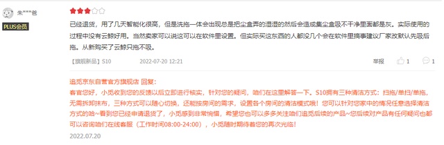 另外,追觅S10虽然贵一点点,体验是比科沃斯T10 OMNI稍逊一筹的,其他智能化体验以及功能配备上都基本持平,自动集尘、自动烘干、自动清洗等功能用着都不错!