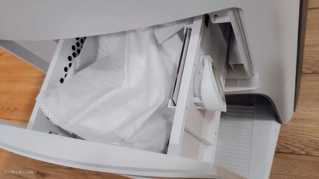 自动集尘,会把尘盒的东西通过大吸力吸到垃圾袋里,这个功能我觉得设计的特别贴心,3L的集尘袋能将每次清扫完的垃圾自动收集起来,这样一来就不用每次扫完地都去苦兮兮地清理尘盒了,理论上两三个月都不用换一次,懒人福音!