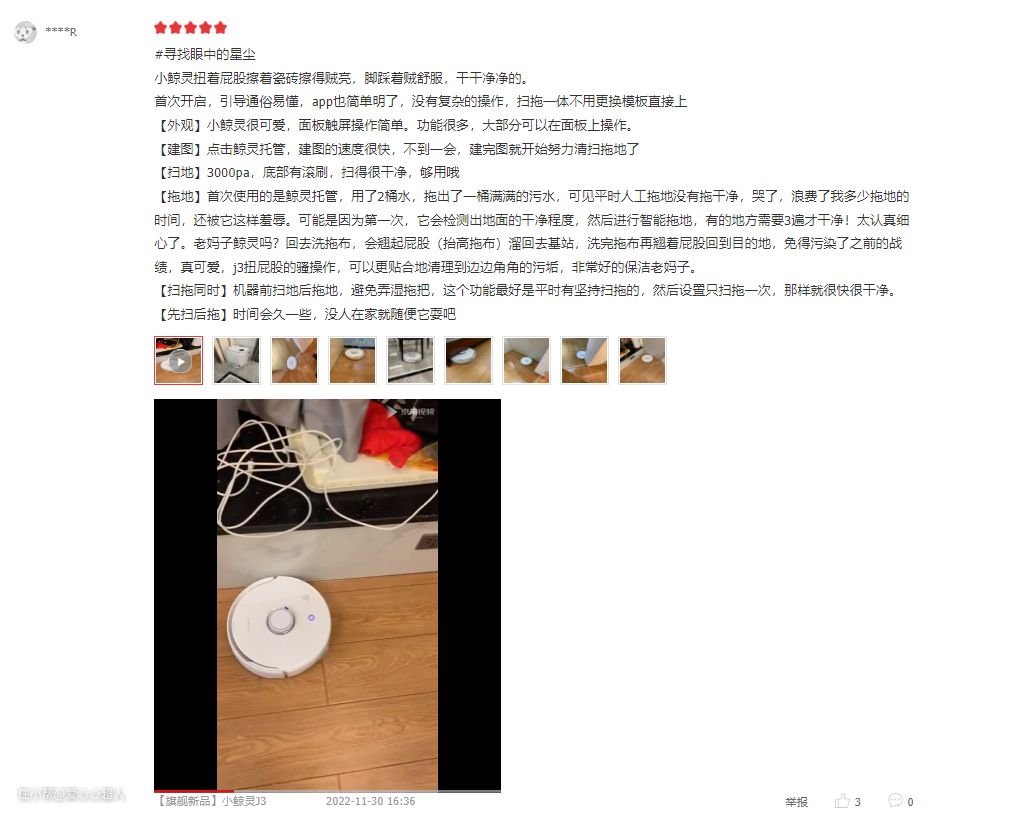 总的来说,大吸力+双旋加压拖布+胶毛一体的滚刷配置和科沃斯T10 OMNI基本相同。清洁能力要优于云鲸J3,略逊色于科沃斯T10 OMNI,之前用着整体表现我还是挺满意的。