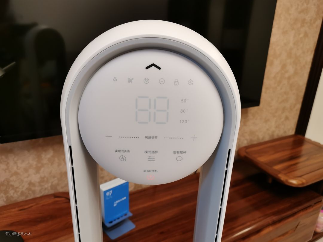 操作面板位于风扇的头部,和位于底部的最大区别是不用遥控也可以随手操作。