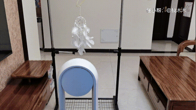 为了让你看的更加清楚,我用传统风扇吹了一下捕风网来和科西A2的吹风效果做一下对比。前后捕梦网被吹起的动作,肉眼可见科西A2这风吹的有多柔和。