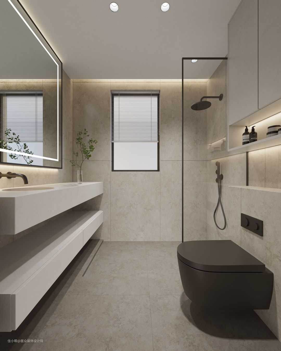相信很多人都被墙顶地浑然一体的卫生间效果图种草过,涂料最大的优点就是没有缝,即使用的两米六的大板砖,一砖到顶也依然会有竖缝,即使用同色的环氧彩砂勾缝,离近了还是可以看到缝,不够完美。而涂料不仅能做到无缝,还能做弧形,让卫生间设计更加多样。
