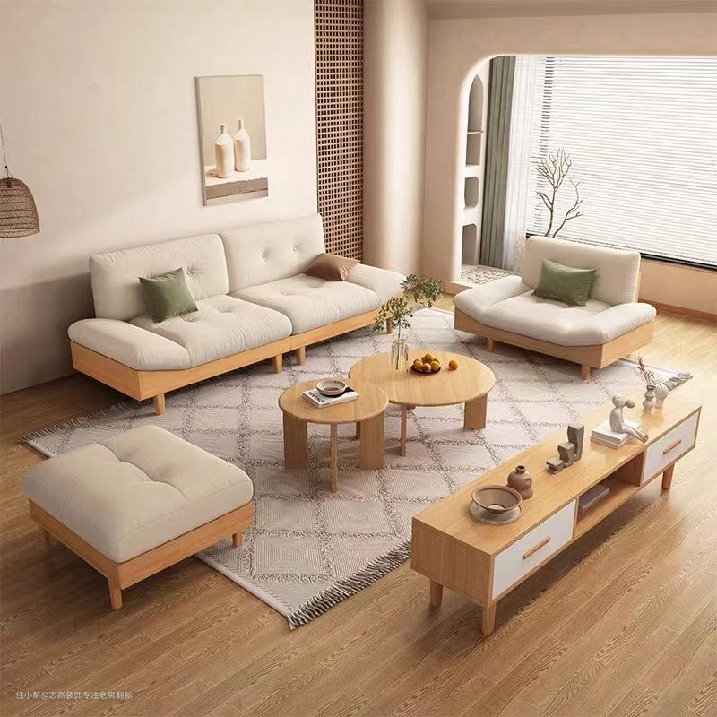 原木风的家具不一定全是木头,沙发可以是棉麻、布艺或者皮革的都可以,实木的云朵、橙色的皮沙发、纯棉麻的沙发也可以。
