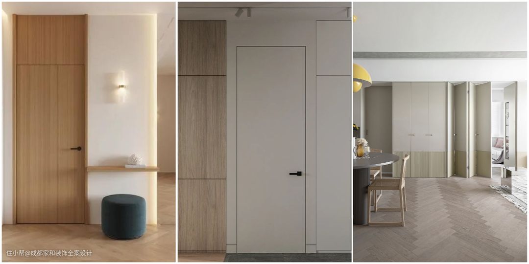 简约风设计常用各种隐形设计来提升空间整体感,现在比较常用的隐形设计有隐形门或无框门、隐形踢脚线、隐形收纳等,简洁又好看。