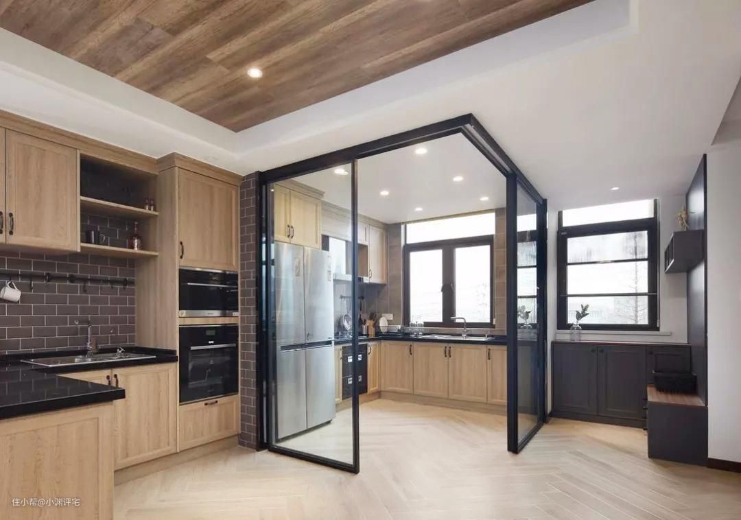第一种是把墙面完全拆掉,并安装转角式推拉门或折叠门。门打开,就是开放式厨房;门关闭,就是封闭式厨房。