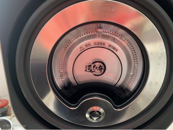 打开盖子,内盖里面是红外加热装置,能从上盖加热的饭煲真的是第一次见。内盖采用的是食品级304不锈钢,非常安全可靠。