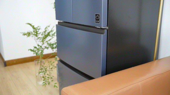 ▼海尔342冰箱整体使用的是深蓝配色,官方页面介绍说这个颜色的灵感来源是斯里兰卡的星光蓝宝石,因此起名为星石蓝,这个颜色柔和低调,透露着满满的高级感,表面带有磨砂纹理的面板触感细腻,使用的时候不易留下指纹,平时清洁打理的时候也比较方便。