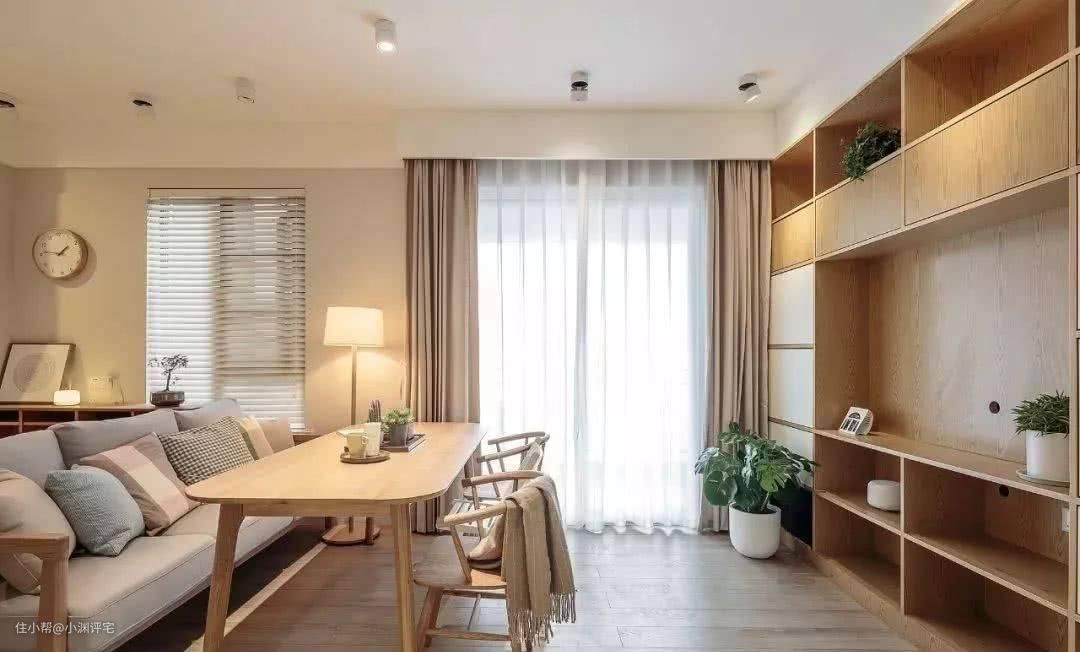 适合家里人口少,没有老人和孩子的用户。实际装修时,可以在客厅里加入书架、办公桌等家具,来提高客厅的实用性。