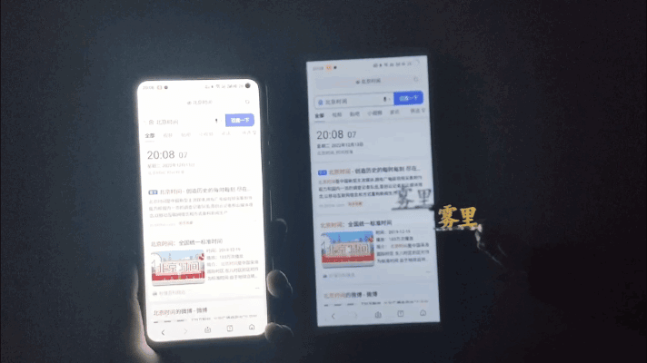 它的无线投屏效果是我测试过这几台投影仪中同屏效果最好的,完成连接后先左右快划了一下,发现意外的流畅,于是打开北京时间测试,给大家看下同步效果: