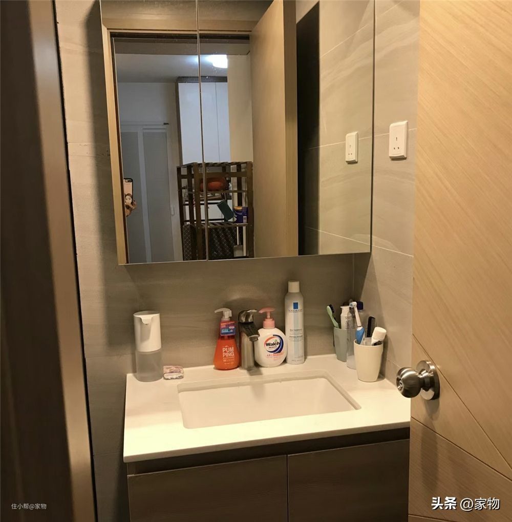 镜柜内也收纳了各种各样的洗漱和沐浴用品,看起来还是挺干净的!